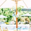 アウトドアは風の影響も受けるので卓上の装飾は最小限にしてお花はパラソルに吊るしました。
