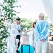 フラワーガーデンで行われた完全オープンエアのオーガニックウェディング。全国から来てくださったゲストを空色の空間でつなぎました。