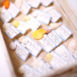 新婦手作りのエスコートカードはサンドトレーに貝殻と共に受付に